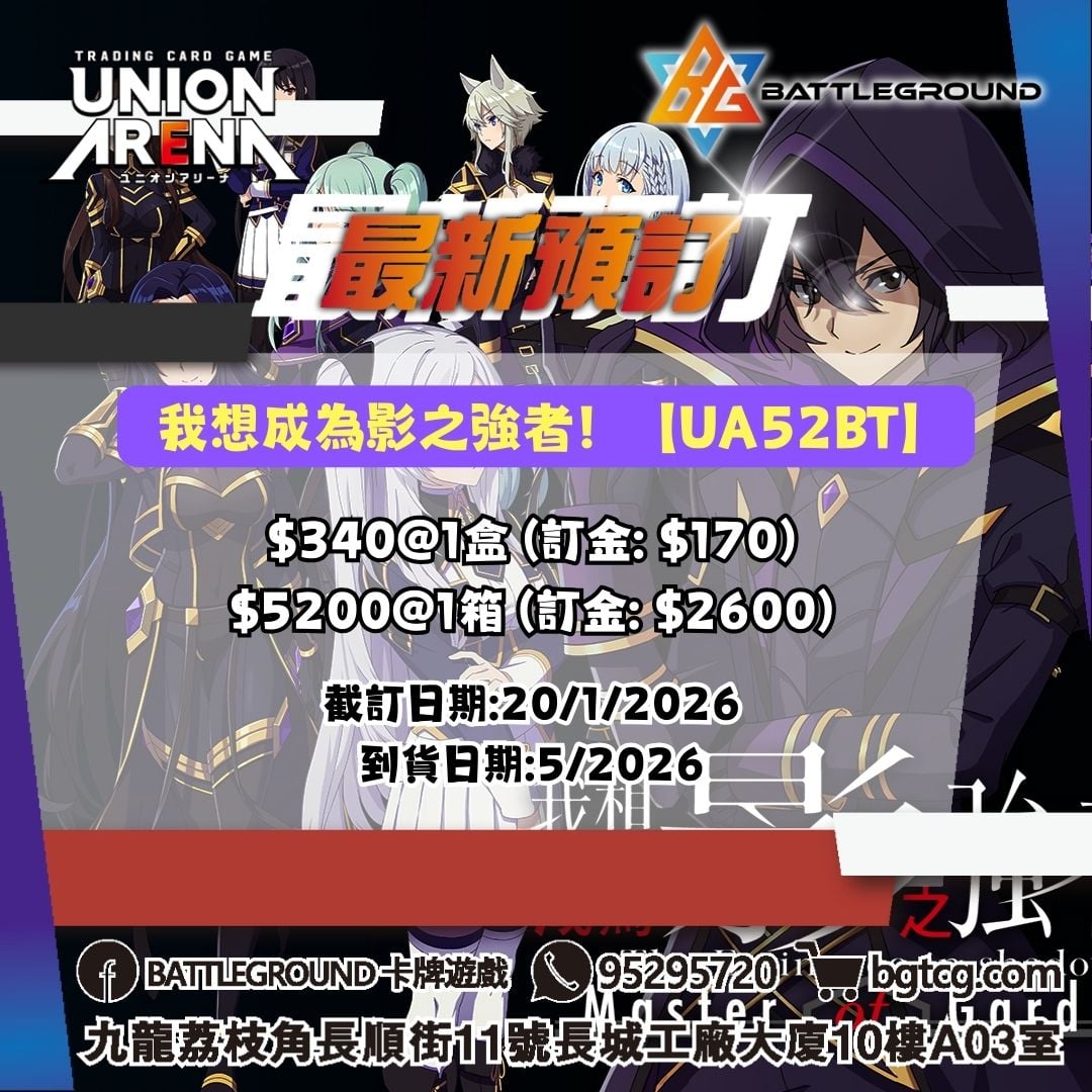 [UA] UNION ARENA 補充包 我想成為影之強者!【UA52BT】 (預計到貨日期: 5/2026)