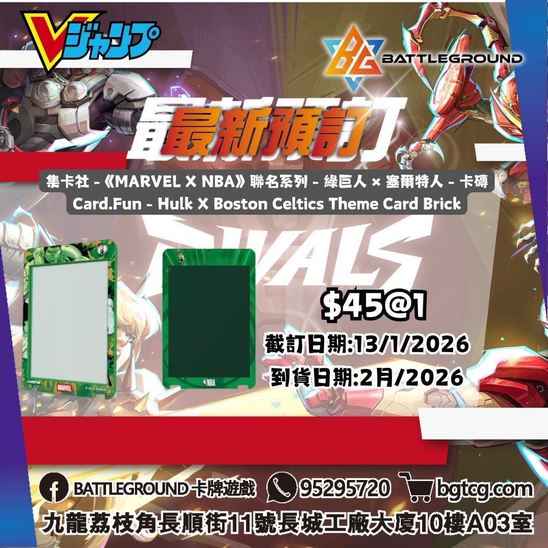 集卡社 -《MARVEL X NBA》聯名系列 - 綠巨人 × 塞爾特人 - 卡磚 Card.Fun - Hulk X Boston Celtics Theme Card Brick 預訂(預計到貨日期: 2/2026)