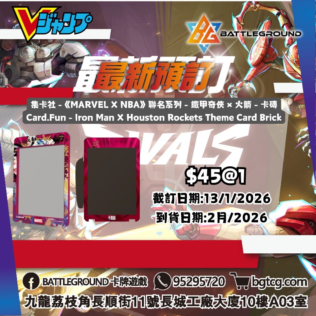 集卡社 -《MARVEL X NBA》聯名系列 - 鐵甲奇俠 × 火箭 - 卡磚 Card.Fun - Iron Man X Houston Rockets Theme Card Brick 預訂(預計到貨日期: 2/2026)