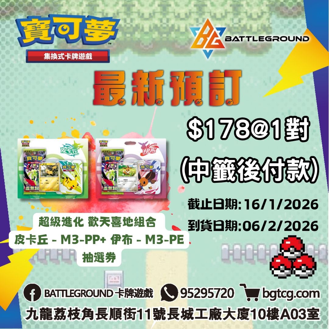 [PTCG] 超級進化 歡天喜地組合 皮卡丘 - M3-PP+ 伊布 - M3-PE 抽選券 (預計到貨日期: 6/2/2026)