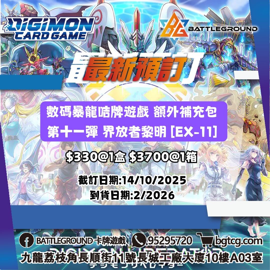 [DGM] 數碼暴龍咭牌遊戲 額外補充包 第十一彈 界放者黎明 [EX-11] 預訂(預計到貨日期: 2/2026)