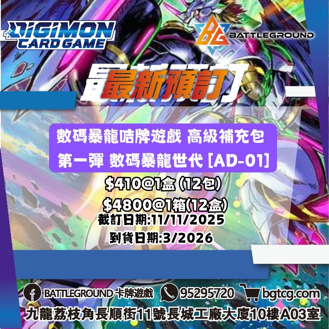 [DGM] 數碼暴龍咭牌遊戲 高級補充包 第一彈 數碼暴龍世代 [AD-01]預訂(預計到貨日期:3/2026)