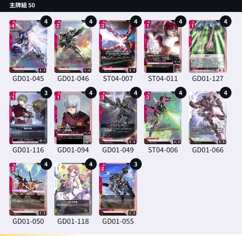 這副牌組以「突破」和效果傷害為核心,牌組中的關鍵卡片如「GD01-045決鬥高達」和「GD01-046暴風高達」不僅具備強大的攻擊力,還能有效支援隊伍的效果,使玩家能夠靈活調整策略以應對不同的戰況。