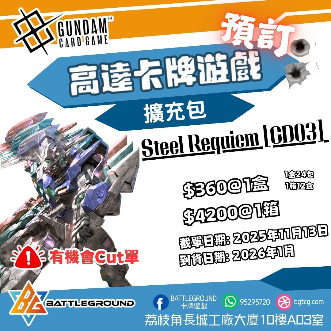 [GCG] 高達卡牌遊戲 補充包 第三彈 Steel Requiem [GD03] 預訂(預計到貨日期: 1/2026)