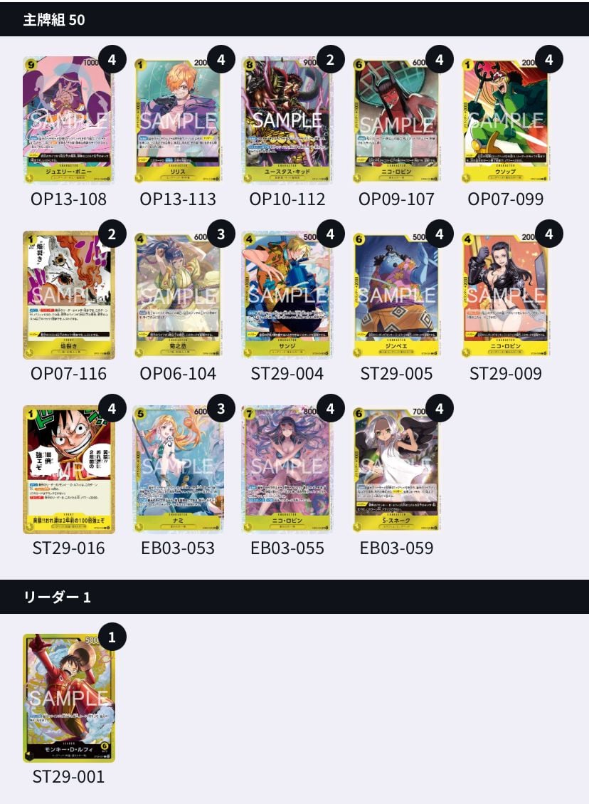 1xST29-001 4xOP07-099 4xOP13-113 3xOP06-104 4xST29-004 4xST29-009 3xEB03-053 4xOP09-107 4xEB03-059 4xST29-005 4xEB03-055 2xOP10-112 4xOP13-108 4xST29-016 2xOP07-116