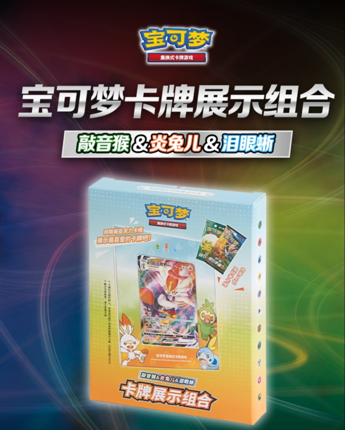 【簡體中文】寶可夢集換式卡牌遊戲展示套裝 – 劍/盾:皮卡丘/小跳蛙 & 敲音猴 & 淚眼蜥 1盒
